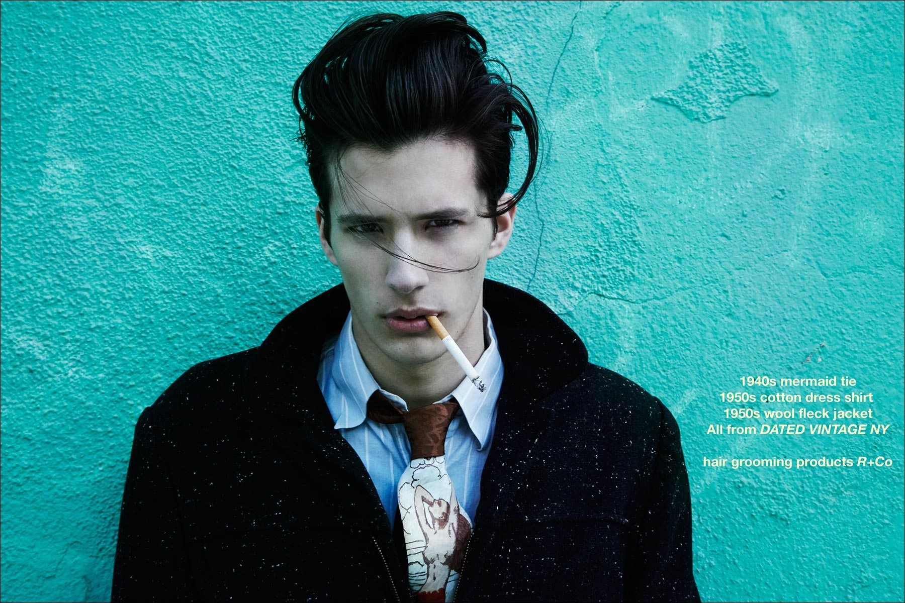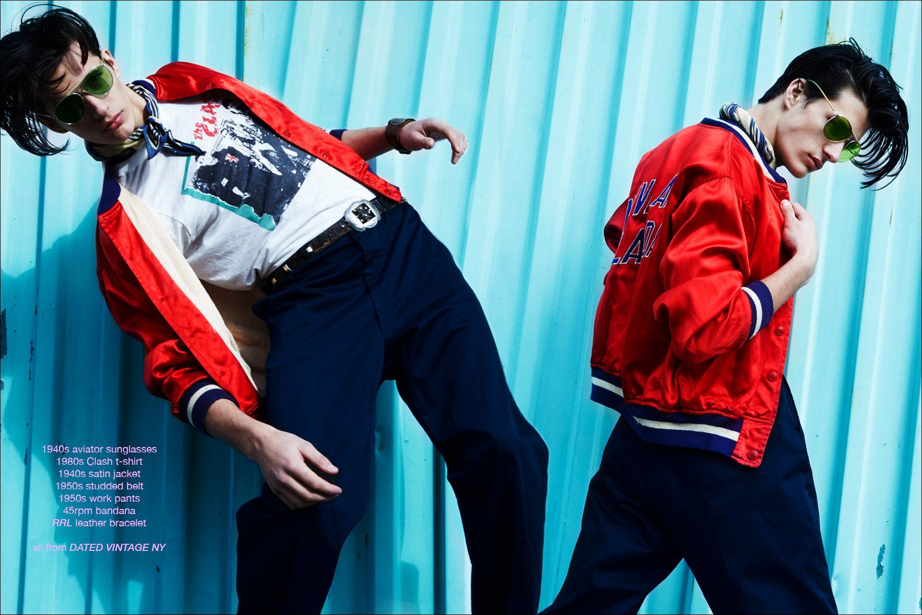 Menswear stylist Antonio Abrego went back to his roots for this Ponyboy editorial and we just loved the outcome! From Antonio, “My inspiration for this shoot was people and musicians from my teenage years in California. This included people from New York and England, and rock ‘n’ roll musicians from the 50s, primarily Little Richard, Gene Vincent, Richie Valens, Chicano punk rockers from the 70s, and bands like The Cramps, The Zeros and The Clash. This also includes Pachucos and other outsiders from the 40s and 50s. I remember seeing older punk rockers wearing vintage clothes from the 40s and 50s with a more contemporary punk rock attitude.” Photography Alexander Thompson. Stylist Antonio Abrego. Men’s grooming Matthew Green. Model Mateo Birkner courtesy of New York Model Management. https://www.instagram.com/mateobirkner/?hl=en
