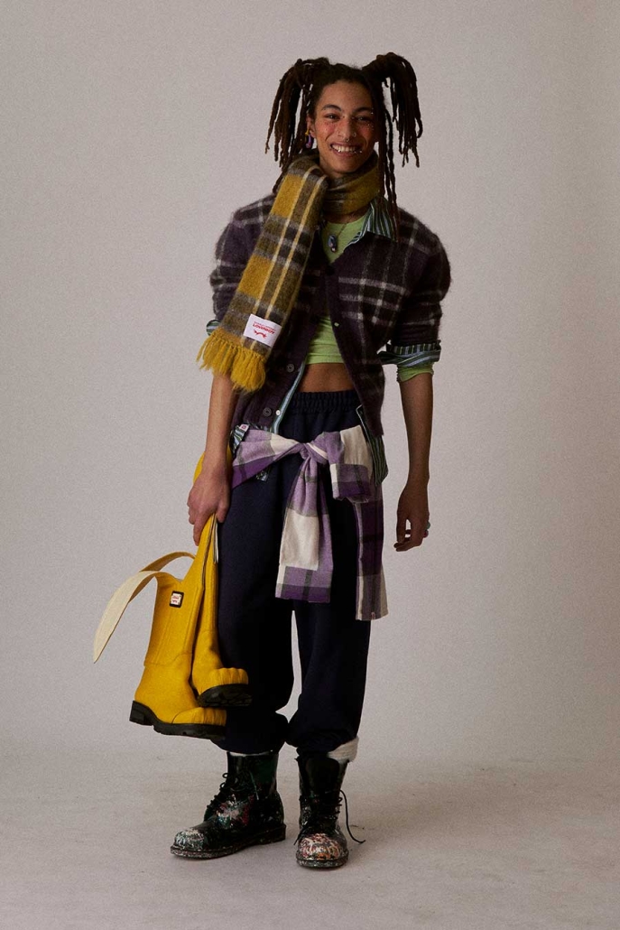 We want more. Do more. More textures. Bobbly crochet, soft moss, worn denim, slouch leather. More knits, and stack them: from mushroom spots to apple-green Fair Isle. We take what we have and we wear it with pride, yes, all of it, every last bit. That’s our form of luxury.