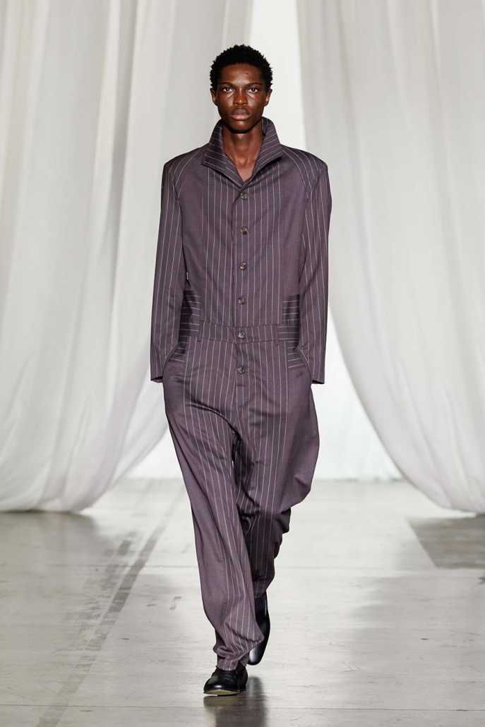 Such traditions led Nash to think about the idea of masquerade through the lens of growing up in London. Here, the designer establishes a new kind of power dressing: the interplay between the formality of tailoring and the ease of casual wear, where a garment can be a vehicle to express one’s multiple selves.